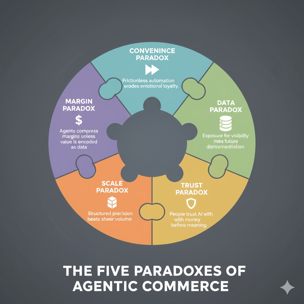 Agentic commerce introduces remarkable efficiencies but also deep structural contradictions. These paradoxes challenge conventional strategy and force leaders to redesign business models, data architectures, and brand relationships.